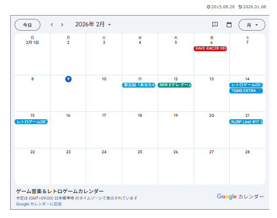 そしてまず「ゲーム音楽&レトロゲームカレンダー」というものを作成し始めたので、β版として公開してみます。