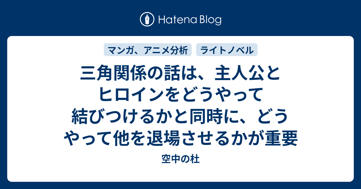 要約すると、恋愛ストーリーは、主人公とメインヒロインが結ばれる話が大切なのと同時に、その恋愛にかかわってきた他の女性キャラをどう退場させるかが、後味の悪さを残さないかで重要じゃないかってことです。